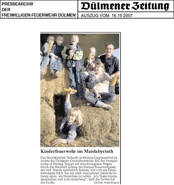 16.10.2007 Kinderfeuerwehr im Maislabyr 16.10.2007 Kinderfeuerwehr im Maislabyrinth NeuBeliebt